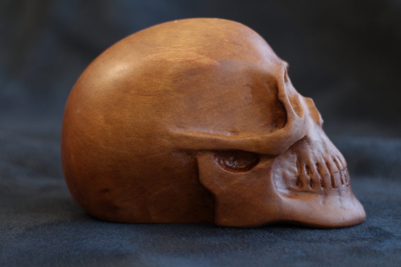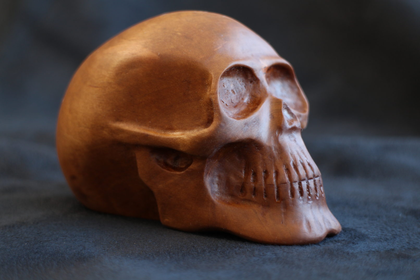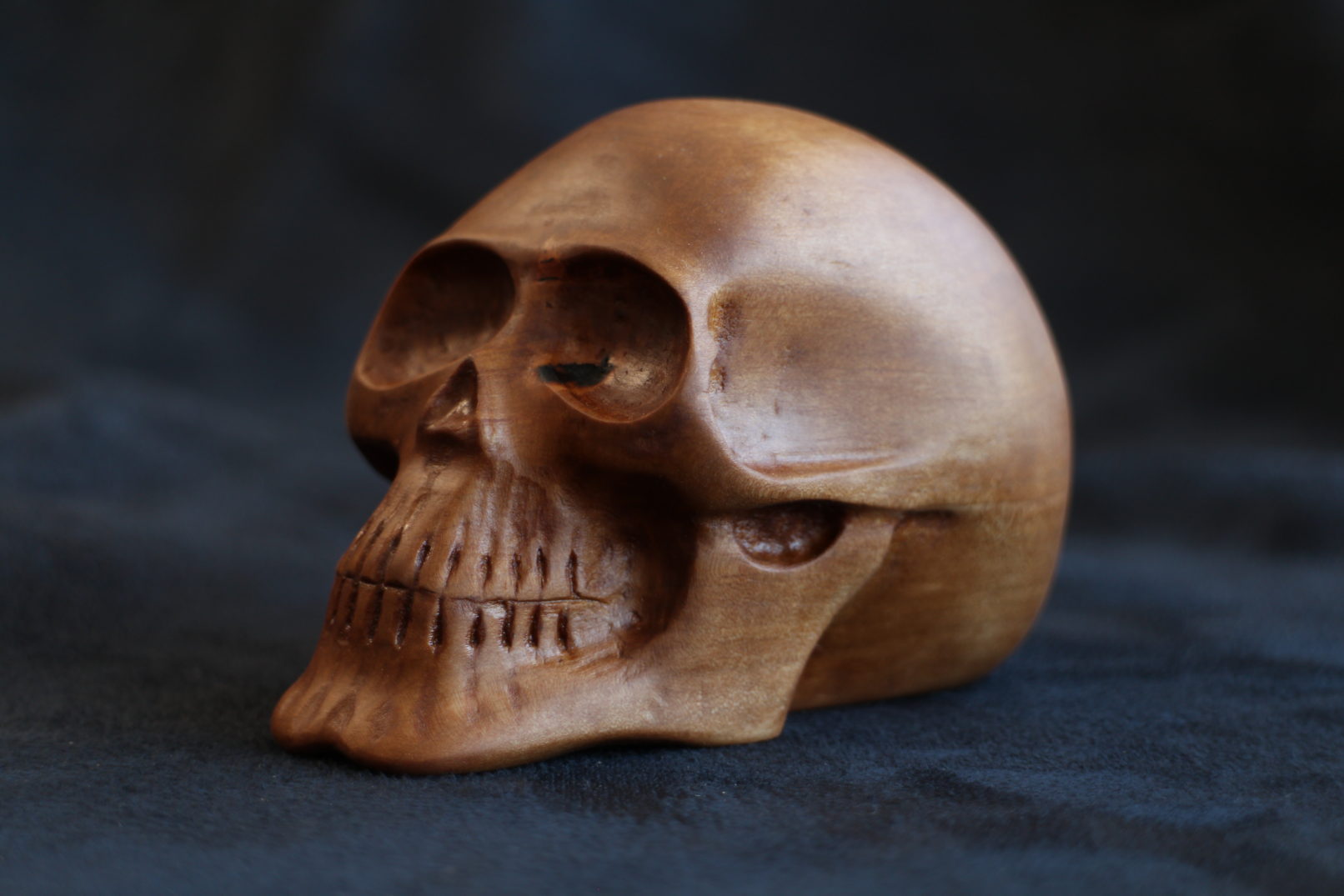 Crâne sculpté dans du pommier.